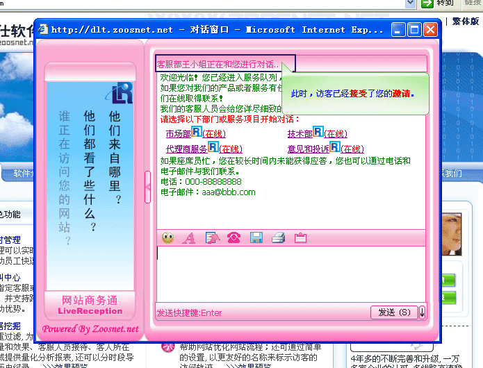 是当访客正在浏览您的网站时,客服端可以直接向访客发出对话邀请的请求。