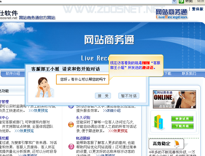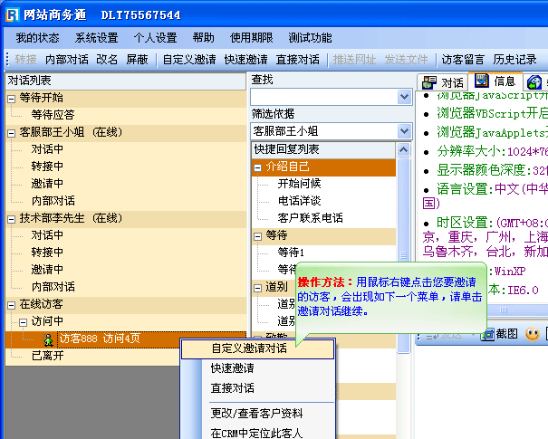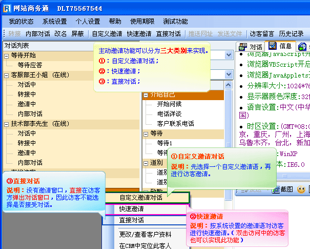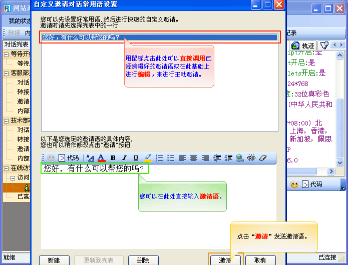是当访客正在浏览您的网站时,客服端可以直接向访客发出对话邀请的请求。